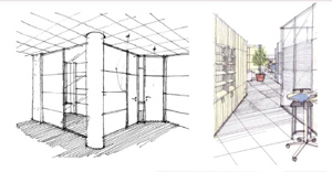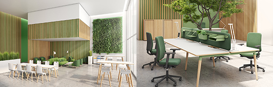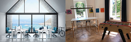 (poste de travail, siège, réunion, accueil, rayonnage, vestiaire, bibliothèque, bar et caféteria).